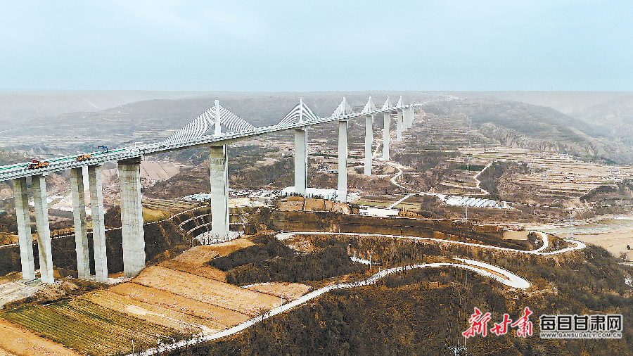 12月23日,G309线合水(老城)至西峰段公路控制性工程六合特大桥进行桥梁动静载试验。该公路全长53.14公里,总投资77.27亿元。新甘肃·甘肃日报通讯员 俄少飞