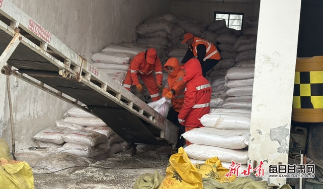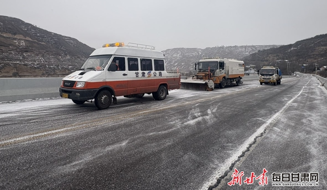“融”字助力,撒布药剂化冰雪。在突出“除”的同时,西峰公路段也注重“融”的作用。为了加速积雪融化,防止路面结冰,3辆自卸车载着撒融雪剂机,行经在国道244线、国道327线、省道318线,工作人员熟练地将融雪剂均匀地撒布在路面上。